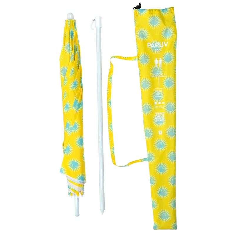 Conçu pour se protéger du soleil sur la plage. Résiste au vent jusqu’à 20Km/h. Abrite jusqu’à 2 adultes.Parasol de plage de 160cm de diamètre. Peut abriter 2 adultes.