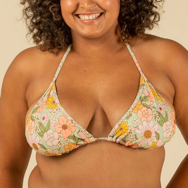 Nous, surfeuses de tous niveaux, avons conçu ce maillot de bain pour la surfeuse débutante qui surfe dans les mousses.Ce haut de maillot de bain triangle coulissant, avec coques amovibles, couvre plus ou moins la poitrine, il est ajustable en tour de dos et cou, avec des finitions en bords élastiqués.