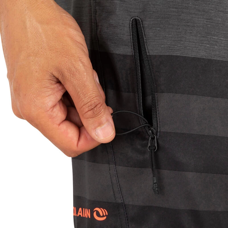 Le boardshort 500 est équipé d’une poche zippée latérale (sur la cuisse droite).